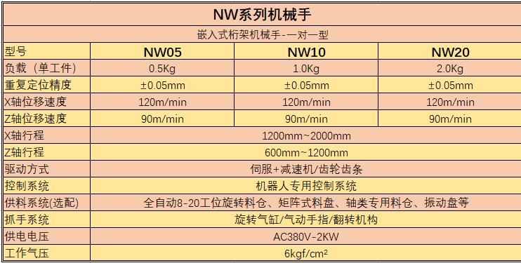 NW系列機械手,作為一款機械手與機床固定的一體機設備,解決了因機床位置偏移造成的位置偏差故障率,增加高精度加工的穩定性。同時也方便了客戶現場布局的隨意性。